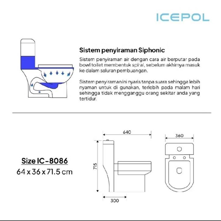 Terlaris Kloset Duduk Icepol IC 8086/One Piece Closet FREE KAYU Elegan