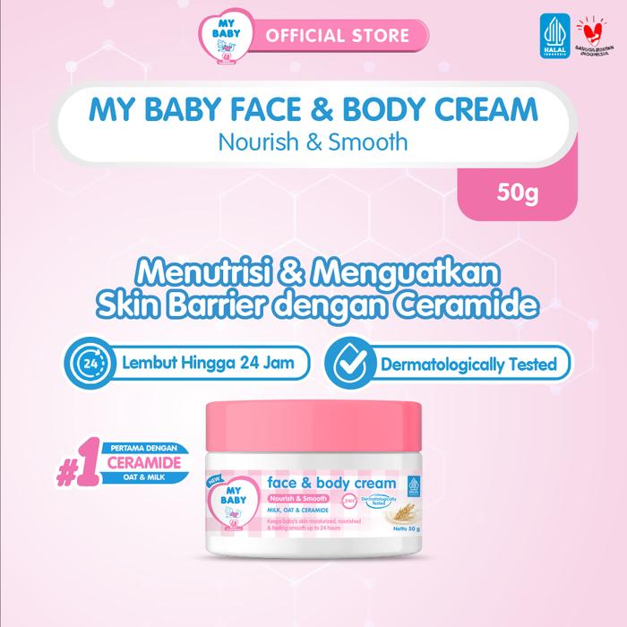 MY BABY Face & Body Cream Nourish & Smooth 50 g - Cream Lotion Ceramide Oatmeal Milk - Exp: 05.2027 Hemat