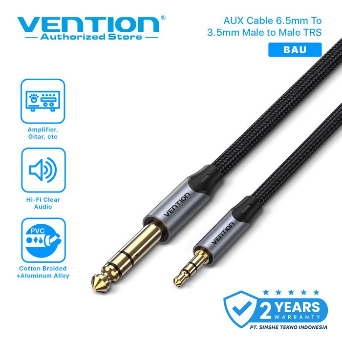 Vention Kabel AUX 6.5 mm to 3.5 mm Male to Male TRS Audio Cable Braided Series - BAU 1.5 Meter