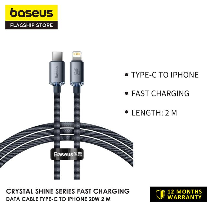 Baseus Crystal Shine Series Kabel Charger USB C to Lightning - Cable Ponsel - Ungu I 2m