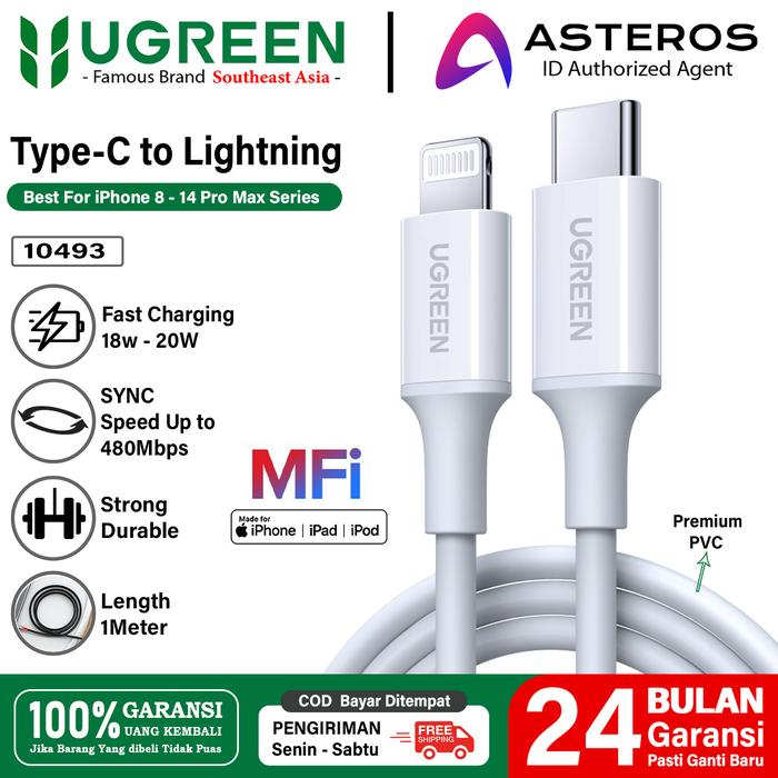 UGREEN Kabel Data iPhone 14 13 12 11 Type C to Lightning Mfi Fast Charging - White PVC