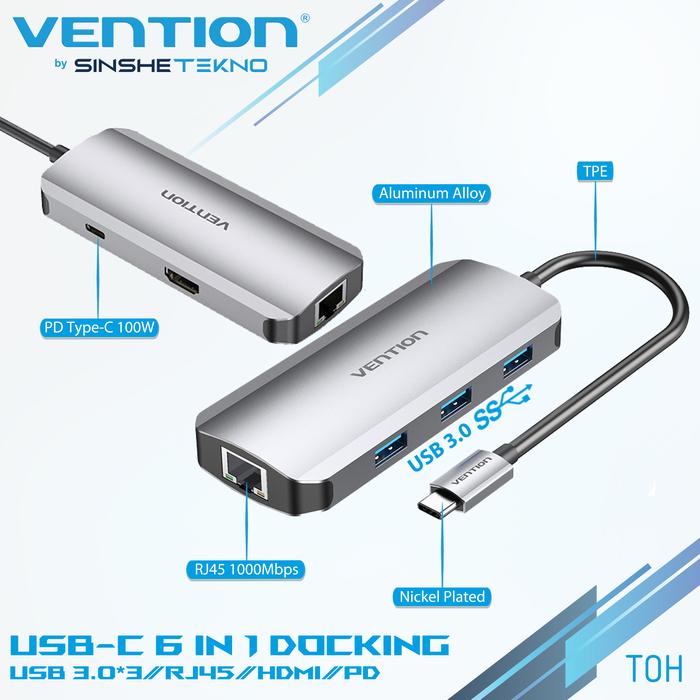VENTION Multiport USB Hub 6in1 Type C to RJ45 HDMI USB3.0 PD Adapter - TOH - USB C Hub 6in1