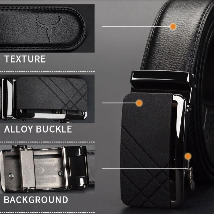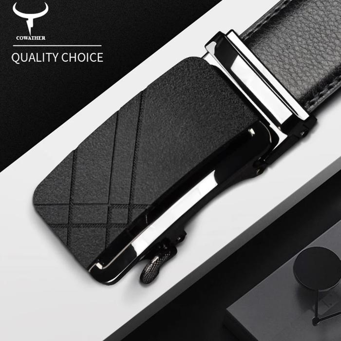 Ikat pinggang Pria Cowather Kulit Sapi Asli - CZ142 Stainless - Hitam 130CM