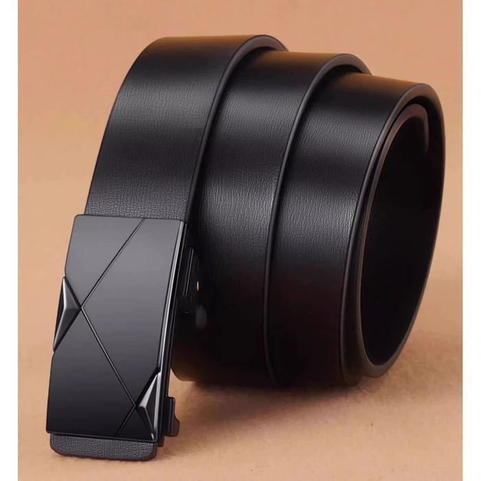 KC11 Sabuk Pria Ikat Pinggang Kulit Sapi Gaya Fashion Gesper Otomatis Belt Pria - Black