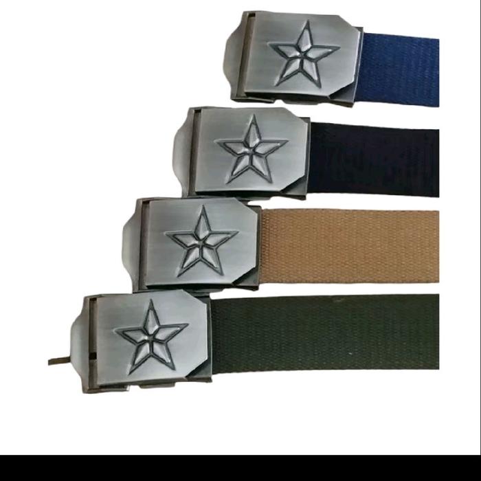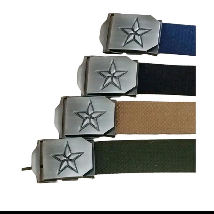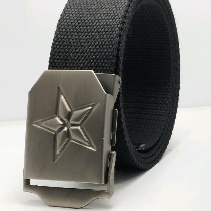 Gesper Sabuk Pria Wanita Katun Canvas Model B Kepala Jepit Angkat - B Hitam 115cm