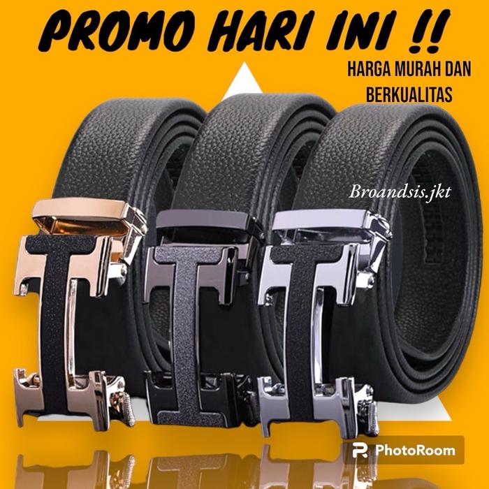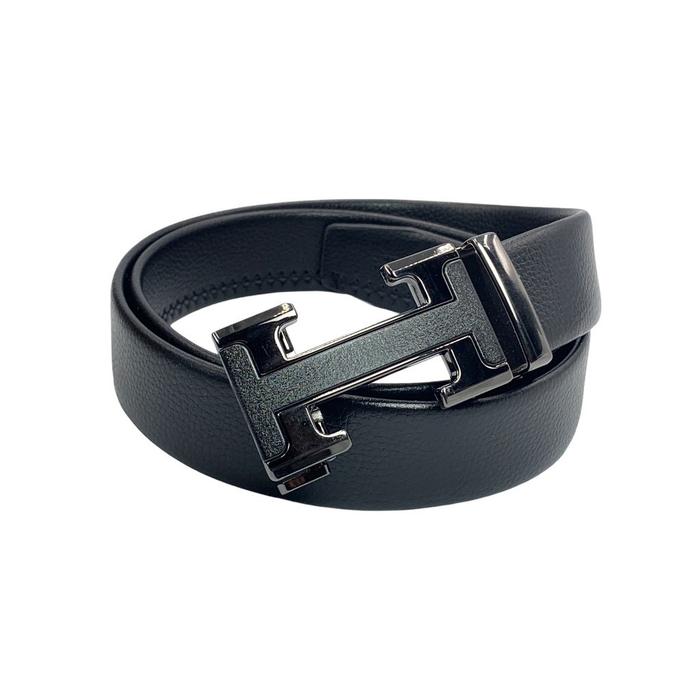 Ikat Pinggang Pria Dan Wanita Sabuk Rel Logo H Hitam Gesper Gesper Kulit - Hitam 120cm