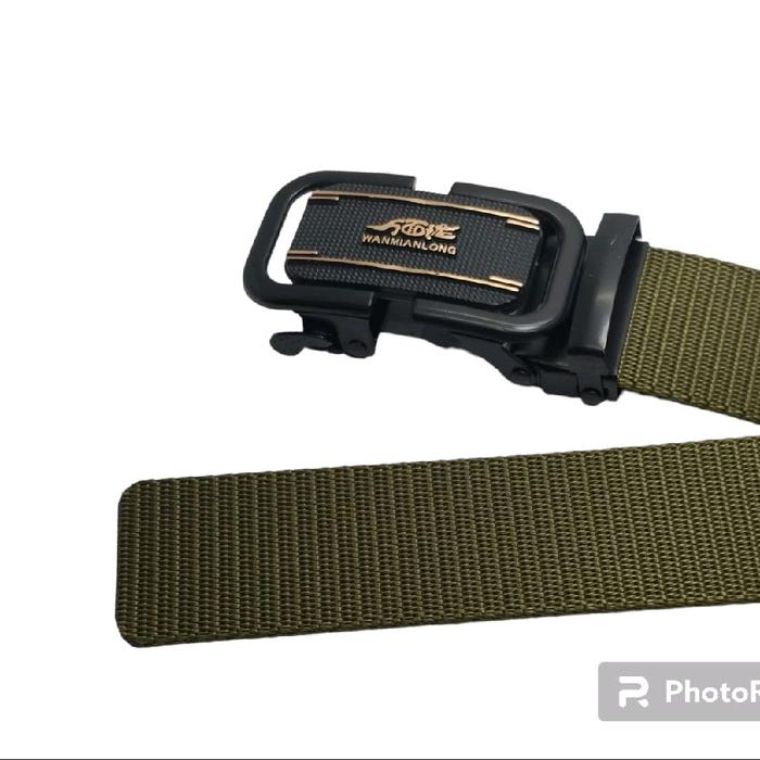 Gesper Sabuk Pria NYLON CANVAS rell Kepala besi 16b Plus Dompet mini kancing - Hitam
