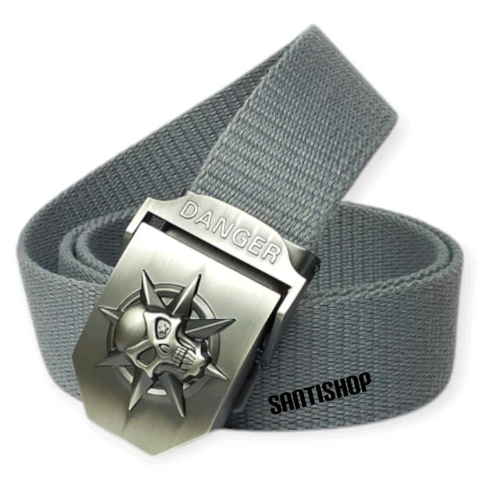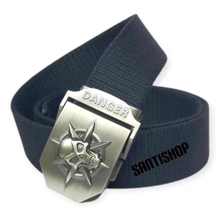 IKAT PINGGANG PRIA TENGKORAK KANVAS TEBAL 4 CM BIG SIZE - hitam 150 CM.TENGKORAK