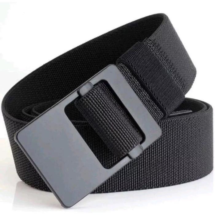 Sabuk Ikat Pinggang Pria Dan Wanita Hitam Polos Katun Model Slip Gesper Stainless Stainless - HITAM