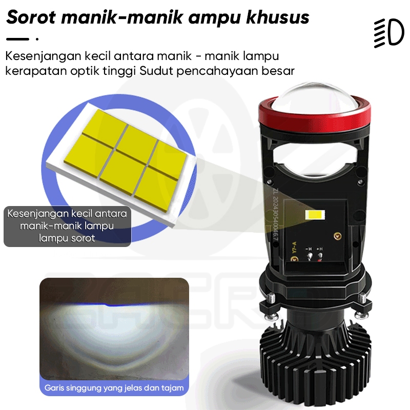 ZACRO Y7D Lampu Led Mobil Dan Motor H4 Mini PJECTOR PROJIE SUPER BRIGHT 50 Watt/Dengan kipas angin
