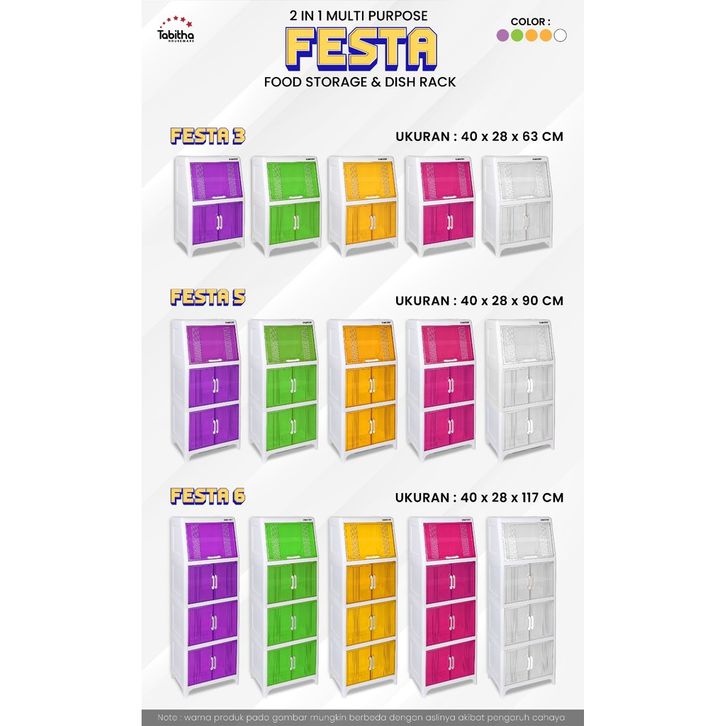 Lemari Piring Tabita Dapur Plastik Tingkat FESTA Pintu Transparan, Rak Tirisan