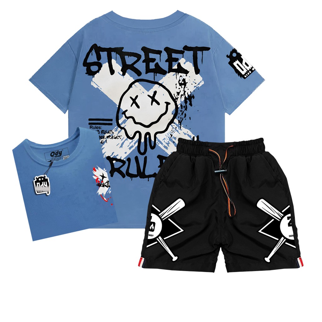 ZIAN- SETELAN ANAK LAKI LAKI BAJU DISTRO SABLON DEPAN BELAKANG DAN CELANA CARGO PENDEK USIA 3-12 THN
