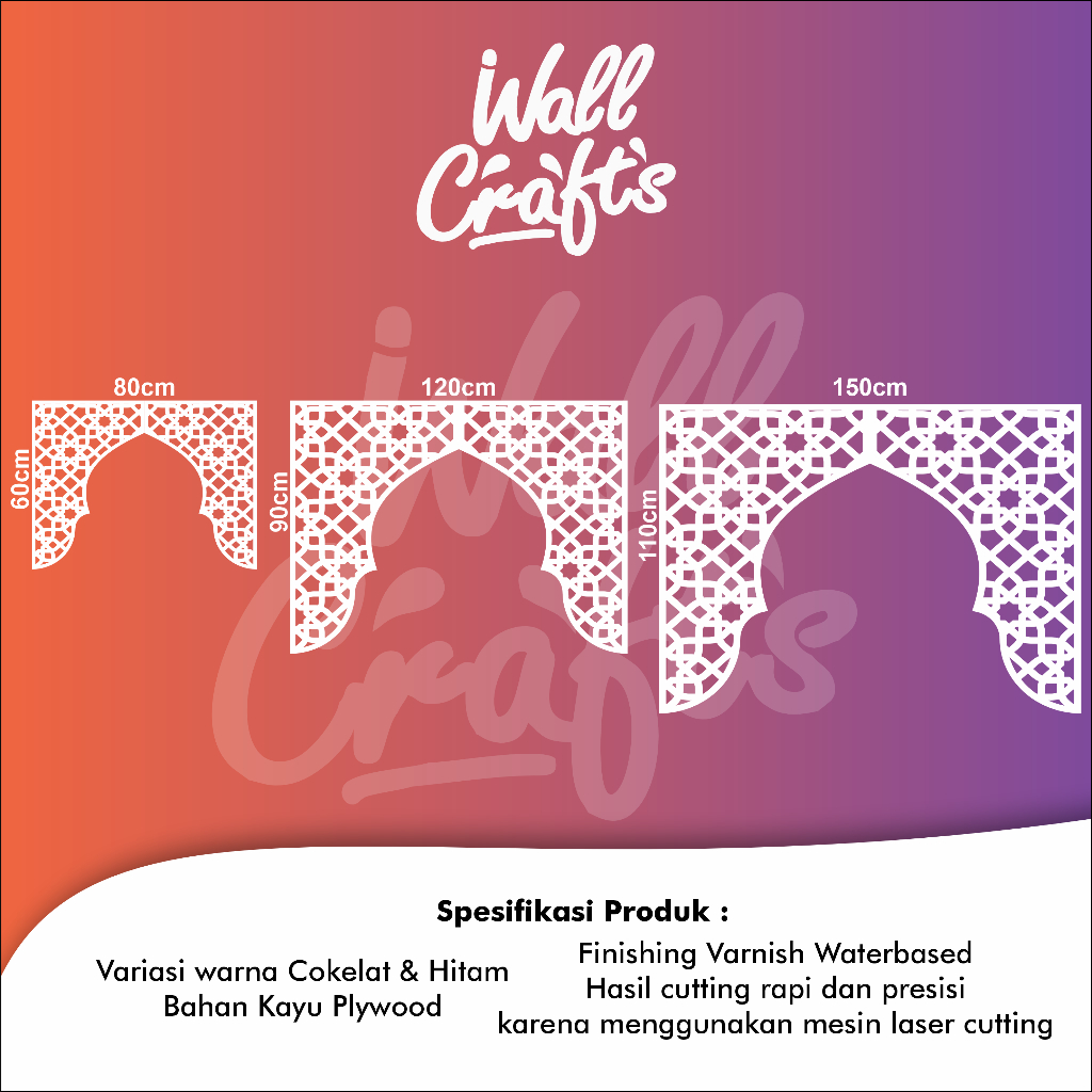 Hiasan Dinding "Mihrab Mushola Pintu" Dekorasi Minimalis Cutting Laser Bahan Plywood