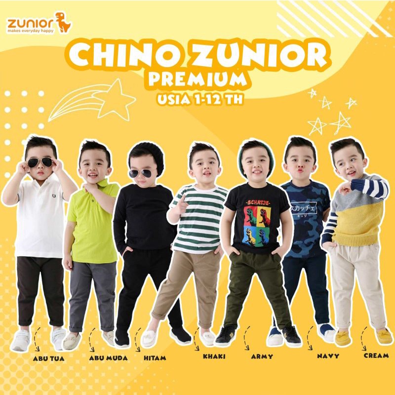 Celana Anak Chino Panjang Laki-Laki dan Perempuan Zunior Premium 7 Warna 1-12 Tahun