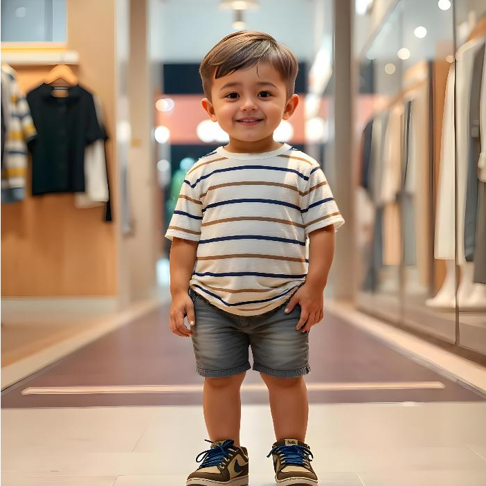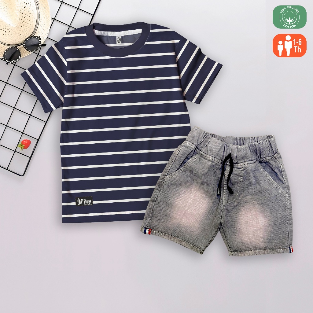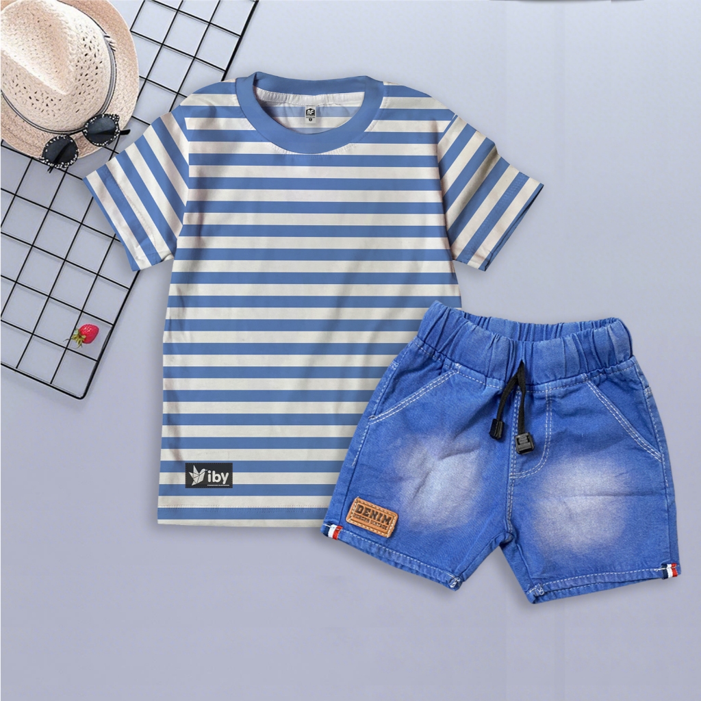 Setelan Anak Garis-Garis dan Celana Pendek jeans