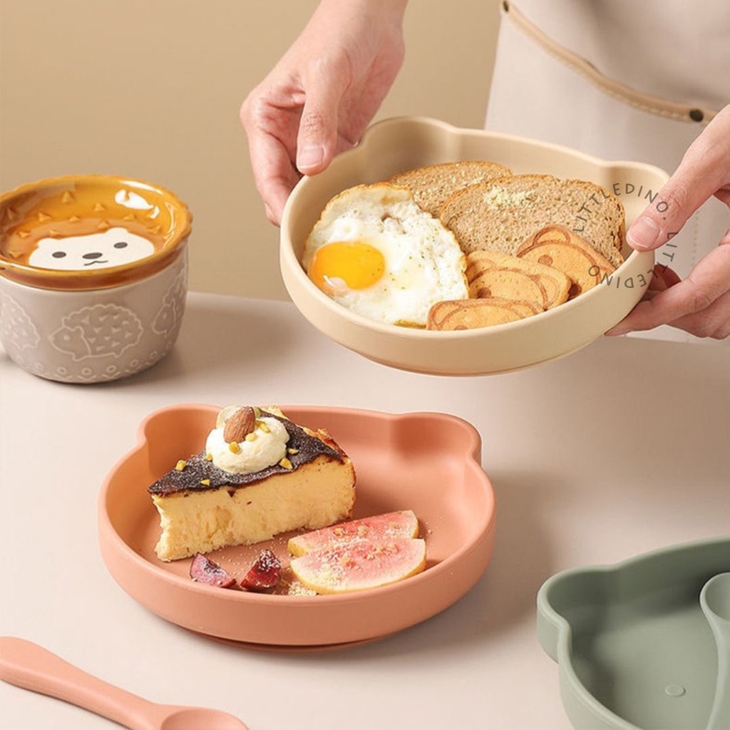 LITTLEDINO - BABY SILICONE PLATE SUCTION BEAR/ PIRING SILIKON BAYI/ ALAT MPASI ANAK/ PIRING SILIKON BERUANG