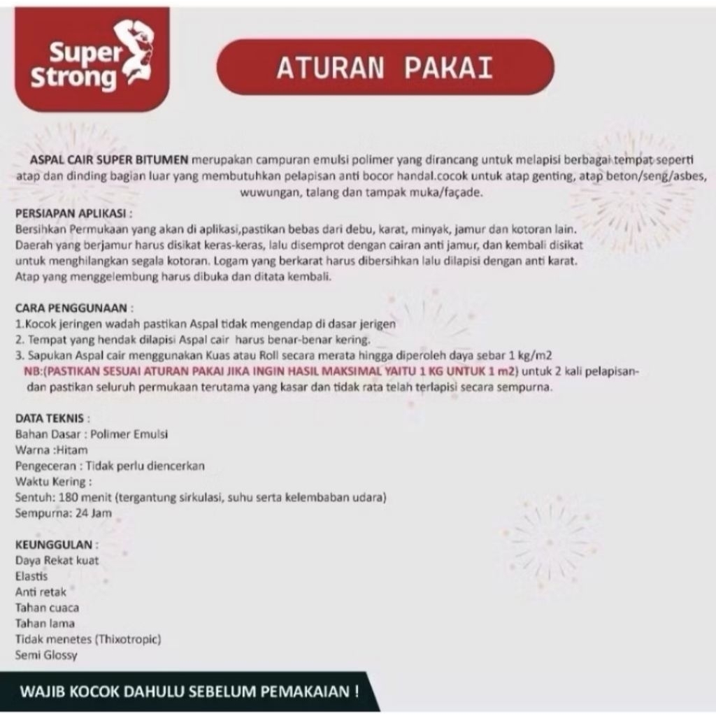 2Kg Bitumen Asphalt Cair Premium For Waterproofing Gratis Kuas & Sarung Tangan (3×Lebih Pekat)