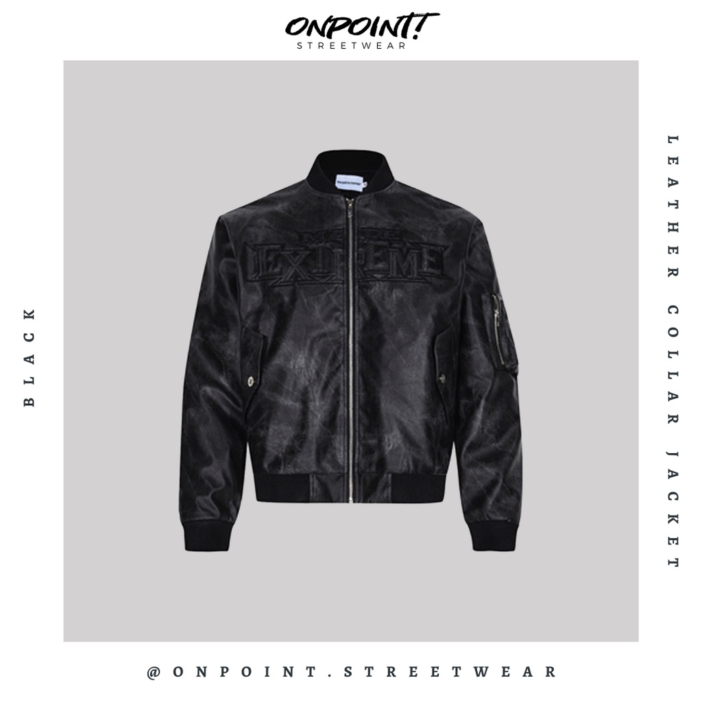 ‼️SALE‼️Collar leather jacket (black) - jaket pria jaket nascar pria jaket kulit original jaket nascar vintage nascar ja