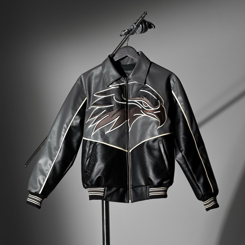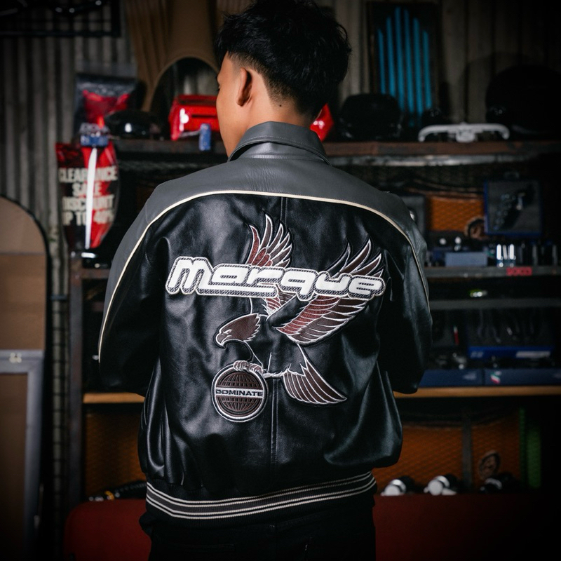 MARQUE.CO Eagle Leather Jacket - Jaket Kulit Pria dengan Boxy Fit, dengan Bordir Kulit Kualitas Terbaik (Dipakai Cellos)