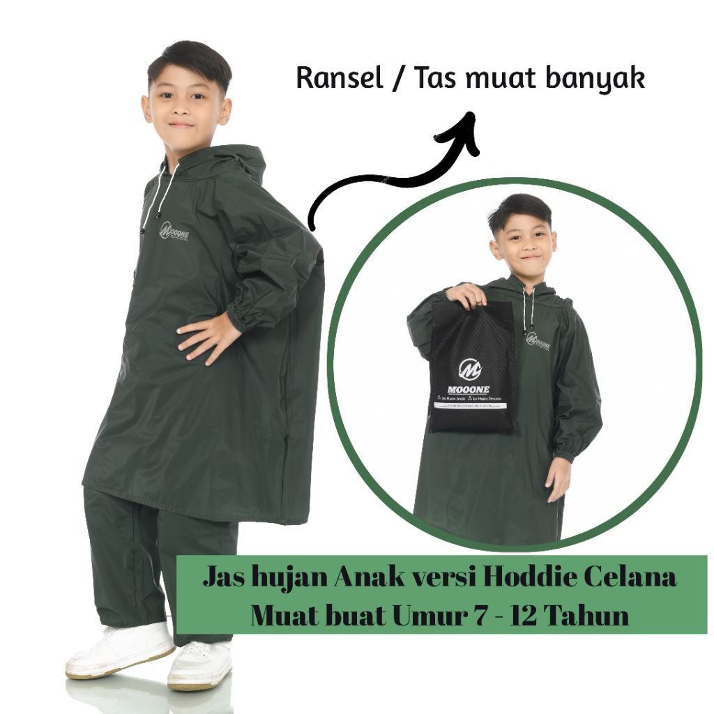 JAS HUJAN ANAK USIA 7 TAHUN - 12 TAHUN JAS HUJAN PONCO + CELANA ANAK ANTI REMBES BY MOOV