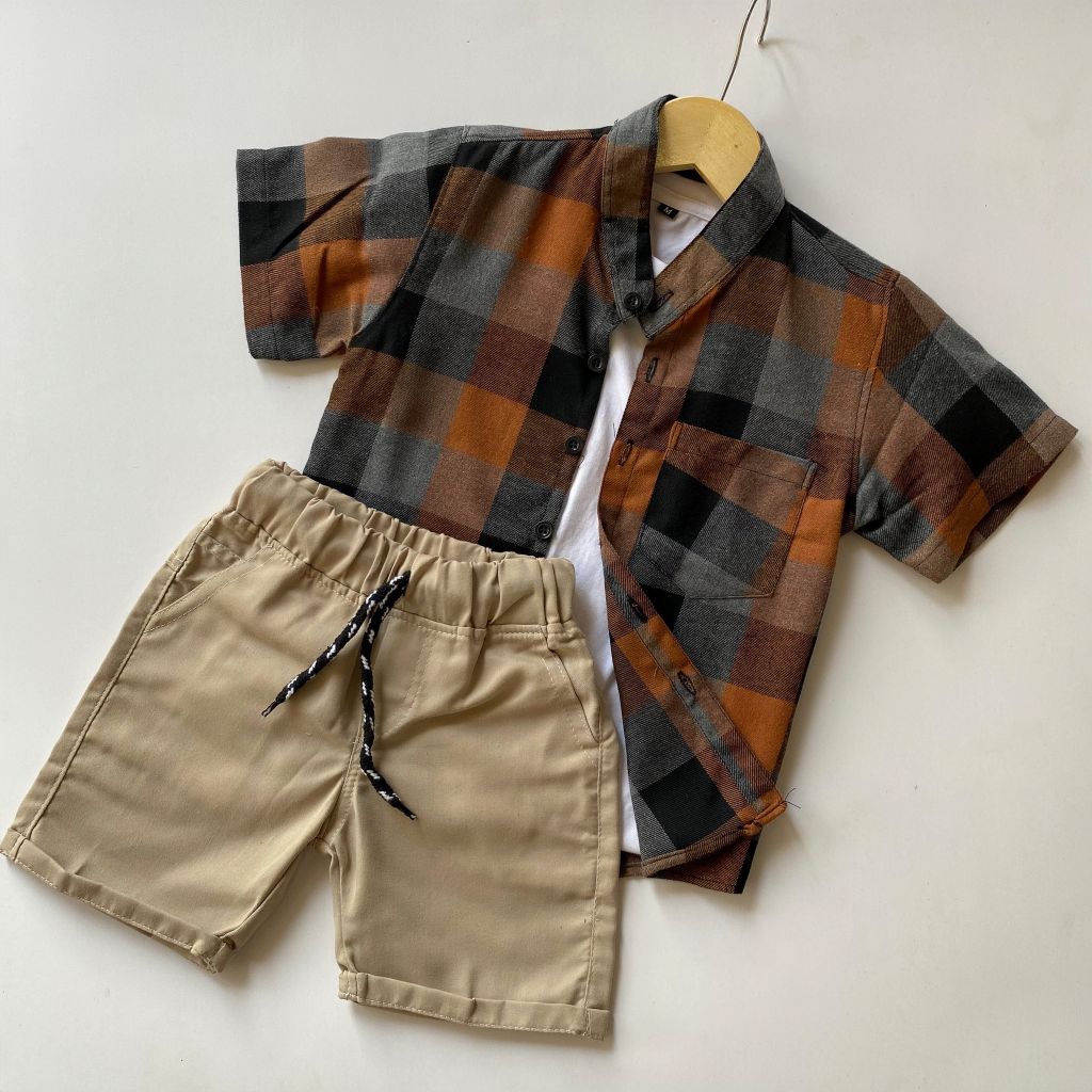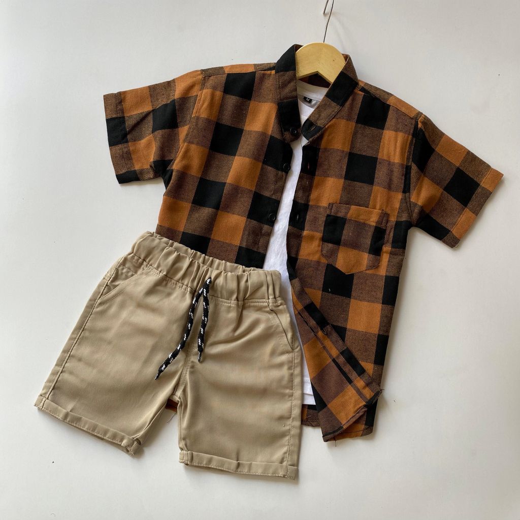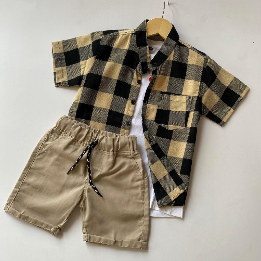 Setelan anak laki laki kemeja flanel celana broadshort twill union usia 1 - 5 tahun