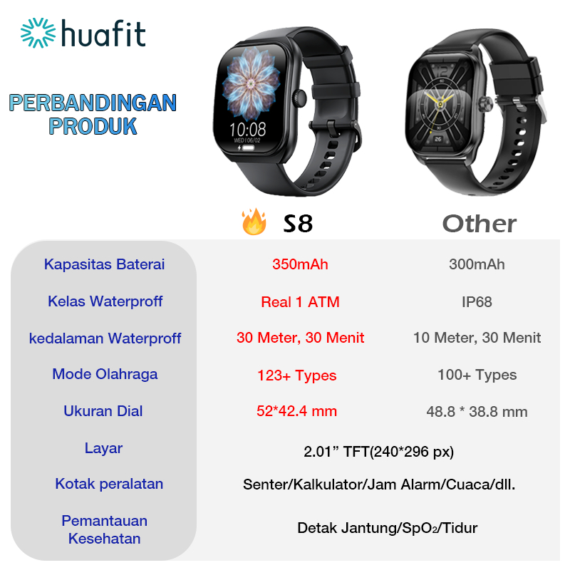 OFFICIAL STORE Aolon Huafit S8 Smartwatch Asli Layar Curve Waterproff 1ATM 123 jam tangan smartwach original watch