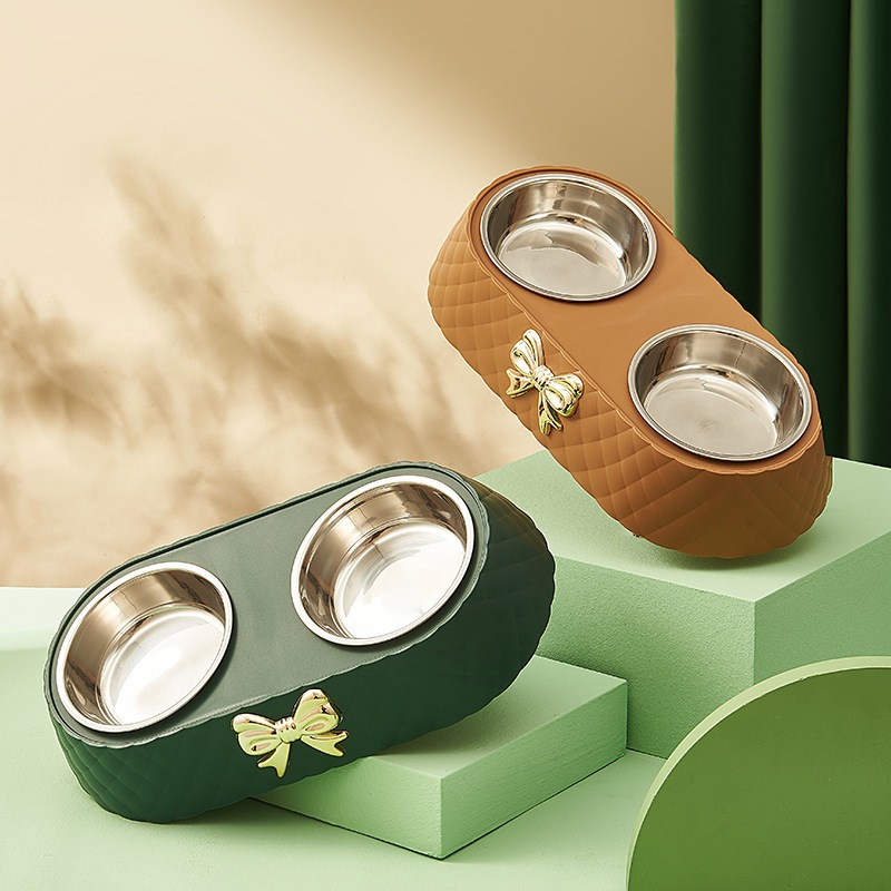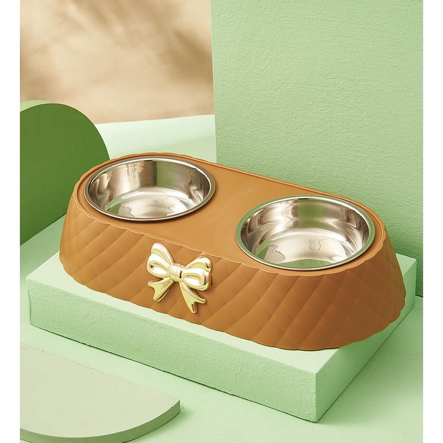 Tempat Makan Kucing Anjing Double Bowl Premium Design Mangkok Stainless