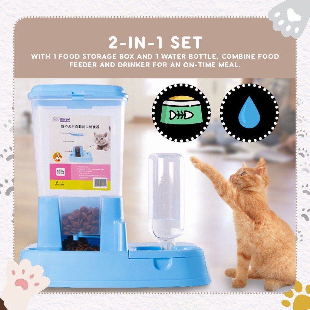 Tempat Makan Minum Otomatis Dispenser Makanan Minuman Kucing Anjing Hewan Peliharaan