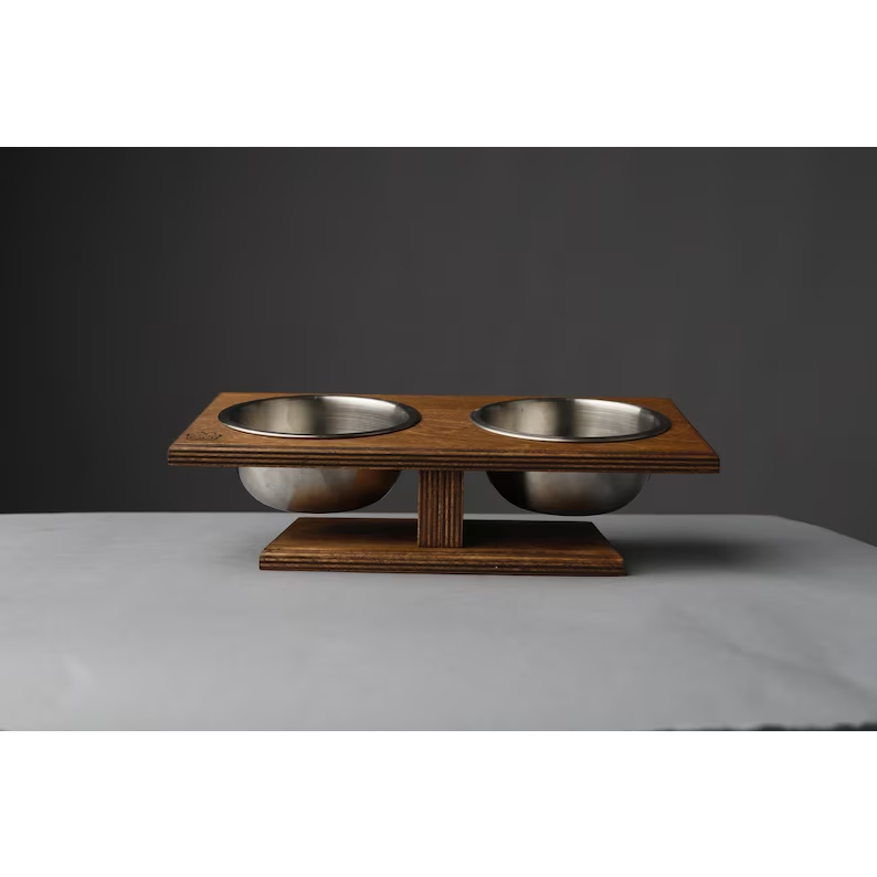 Tempat Makan kucing/Anjing kayu Miring Anti Muntah