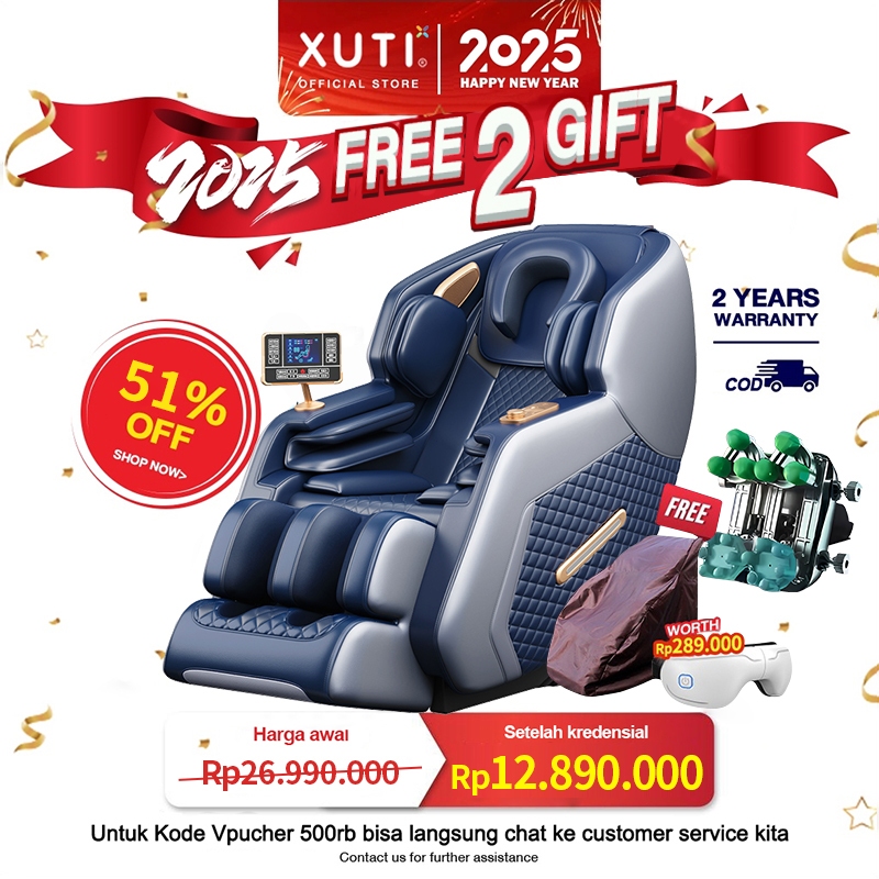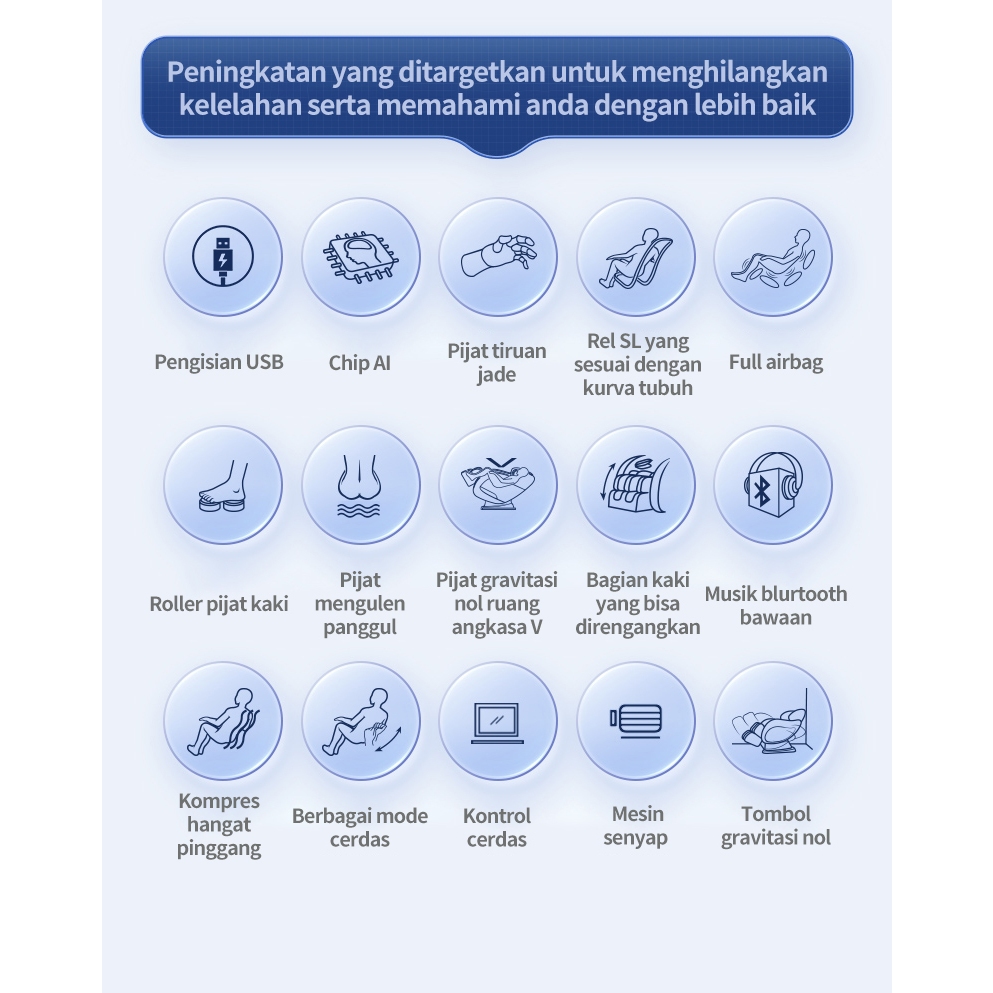 XUTI Kursi Pijat Kontrol Suara AI Cerdas Kursi Pijat Listrik Multifungsi, Kepala Pijat Serpentine Jade