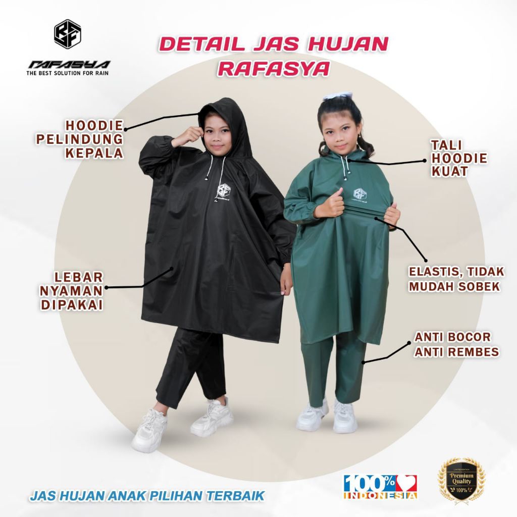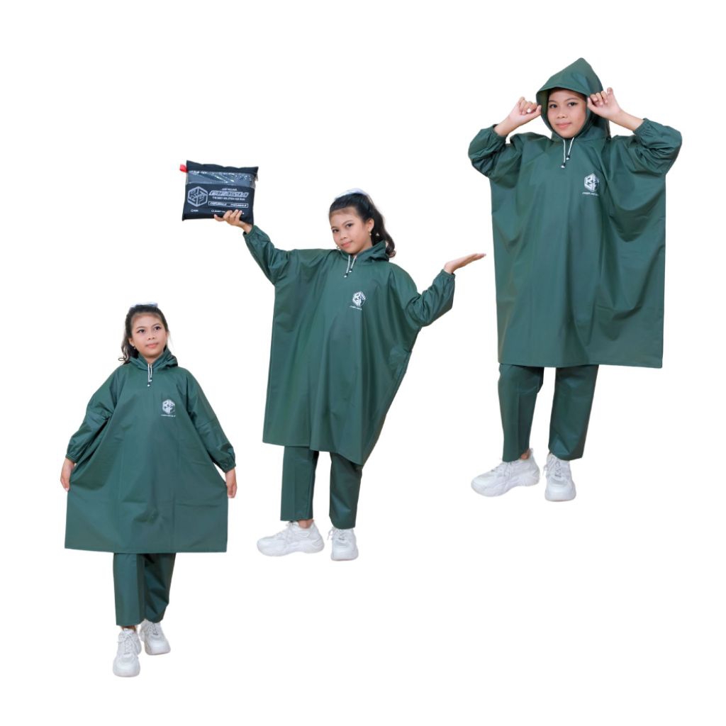 Jas Hujan Anak Usia 7-12Thn Ponco Setelan Lebar Bahan PVC Tebal