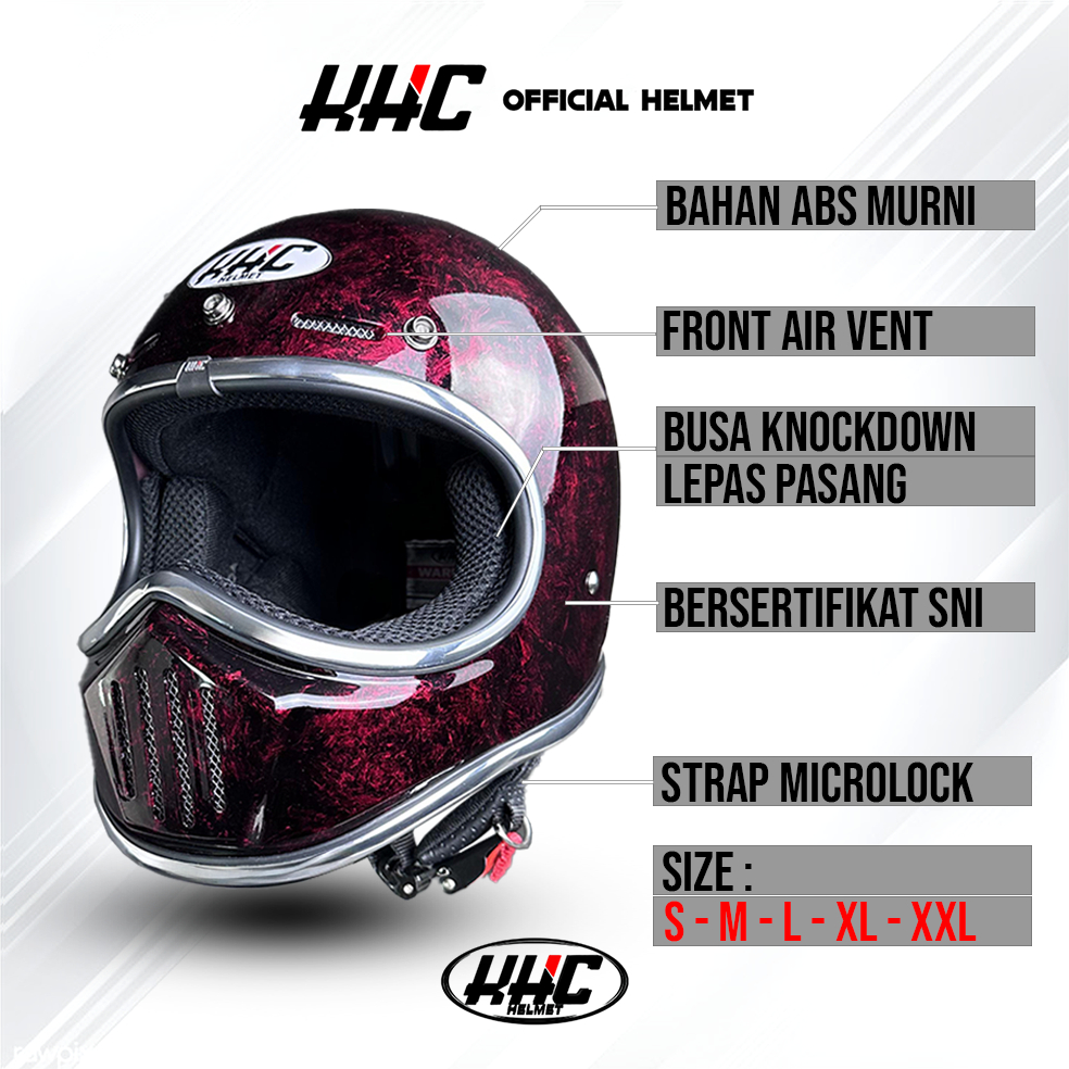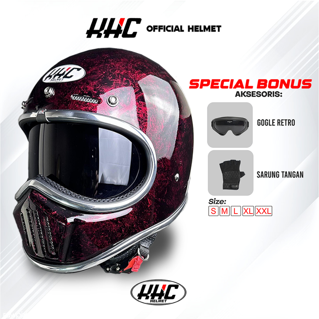 KHC Helm Cakil Motif Original Full Face List Chrome Inner Visor FREE GOGLE+ST