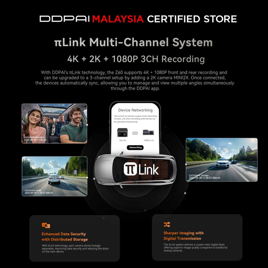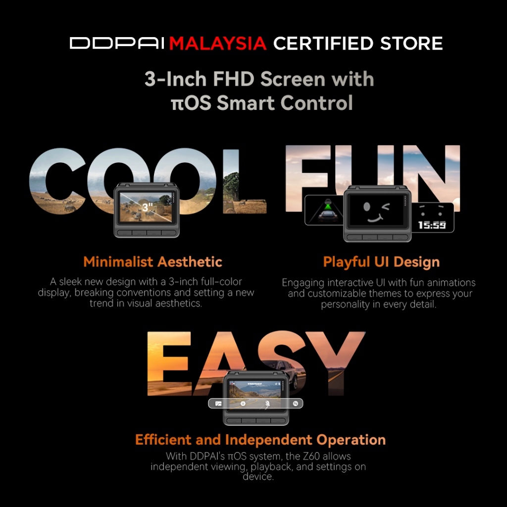DDPAI Z60 Dual 4K Ultra HD GPS 3 Channel Front 3840& Rear 1920 Super Capacitor Dash Cam with 4G Connectivity Night Visio
