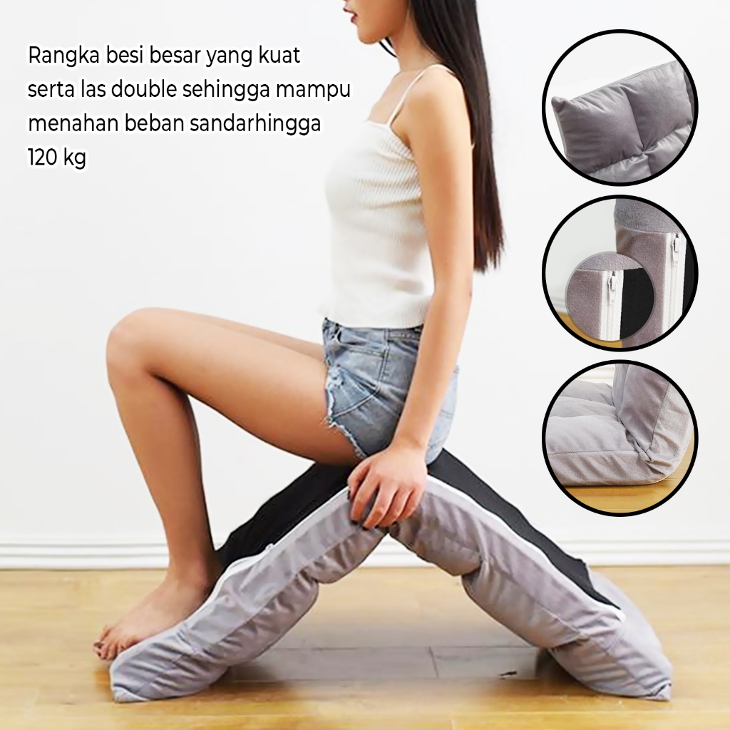 Kursi Lesehan Lipat dengan Sandaran & Bantal Jumbo | Sofa Lantai Empuk Multifungsi untuk Gaming Belajar & Santai