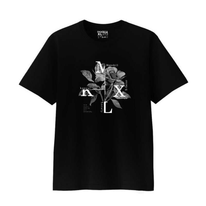 Maxskill PAKET BUNDLING [ BELI 1 DAPAT 3 ] LEAF BLUE+MXKL ROSE+JUST BE AWESOME T-shirt Hitam Kaos Distro Cotton Combad 24s