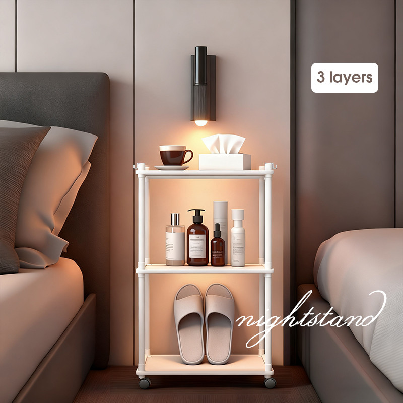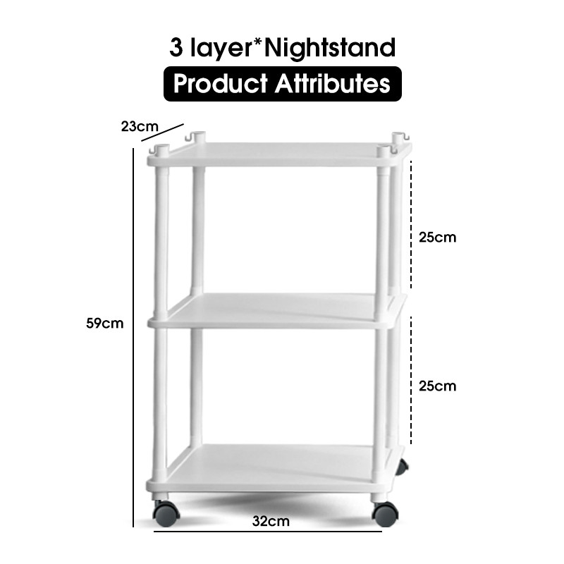 HomieGear Rak Susun Roda Samping Tempat Tidur Buku Rak Dapur Plastik Rak Kamar Mandi