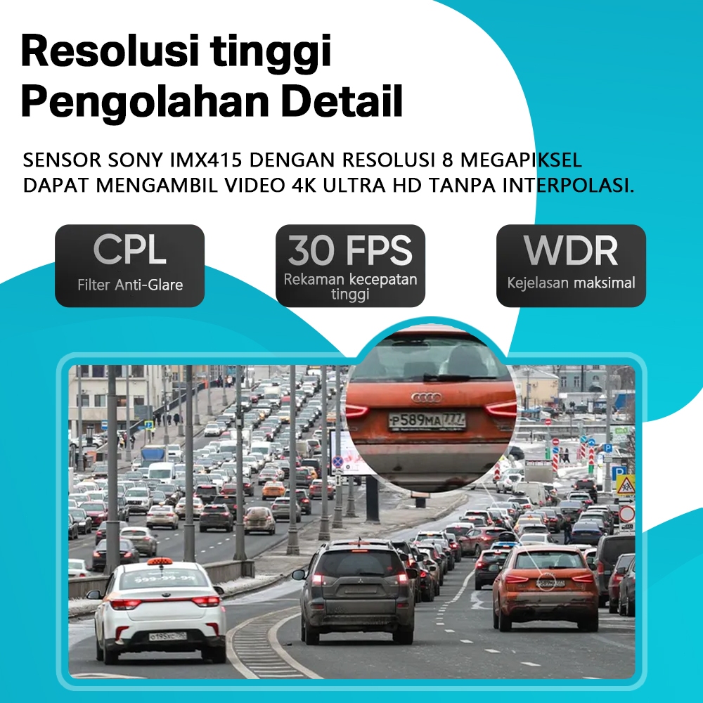 Dash Cam Pro Plus V22 Set 4K GPS (Front +Rear Camera) Dashcam Mobil Perekaman Loop 24 Jam Berisi kartu Memori
