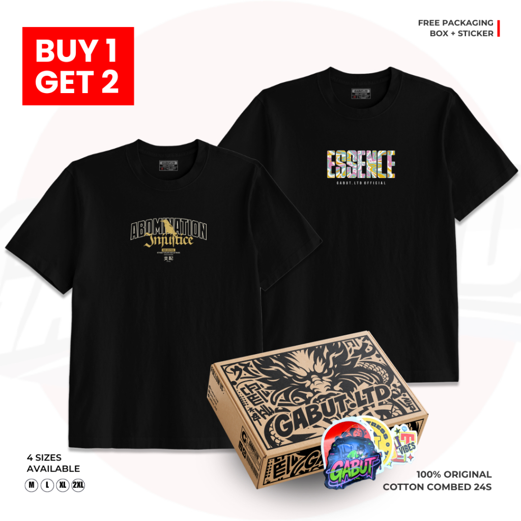 [GABUT] - Paket Bundling 2pcs Baju Kaos Distro Unisex Pria Wanita Motif Abominasion dan Essence Cotton Combed 24s Kaos Oblong Pria Wanita 100 persen Produk Original
