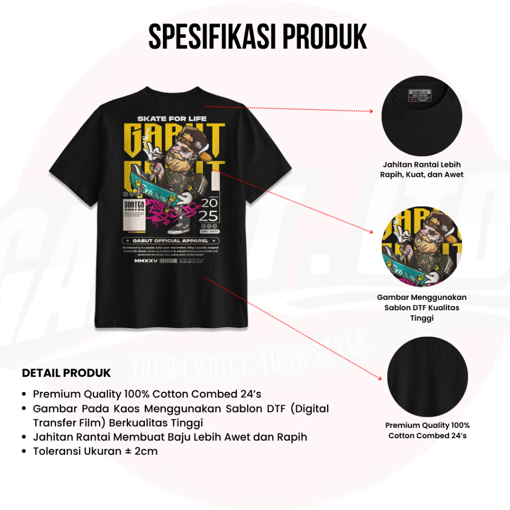 GABUT] - Paket Bundling 2pcs Baju Kaos Distro Unisex Pria Wanita Motif Skate For Life Hitam dan Jurassic Skate Hitam Cotton Combed 24s Kaos Oblong Pria Wanita 100 persen Produk Original