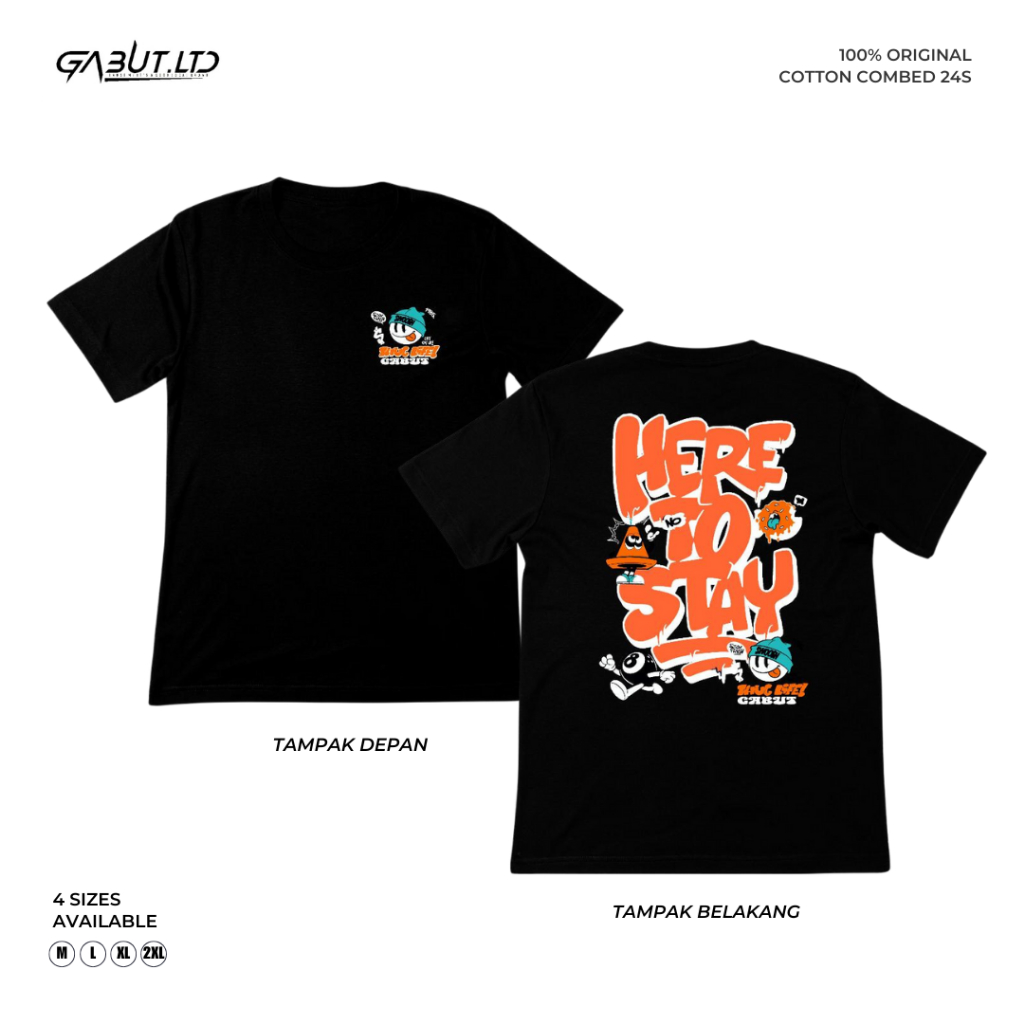 [GABUT] - Paket Bundling 2pcs Kaos Distro Dewasa Pria dan Wanita Cotton Combed 24s Sablon DTF Motif Gabut Here Hitam dan Street Rules Hitam
