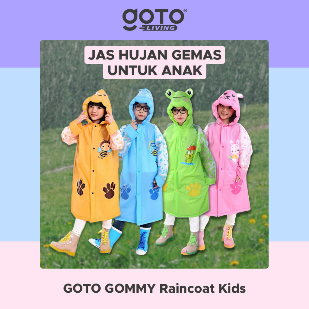 (Special Offer) Goto Gommy Jas Hujan Anak Perempuan Laki Laki Mantel Lucu Karakter