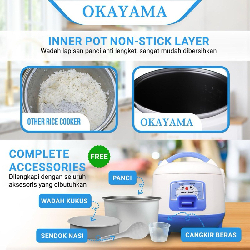 OKAYAMA Rice cooker OK-105 1 Liter Magic com / penanak nasi / anti lengket / 1 Liter putih biru