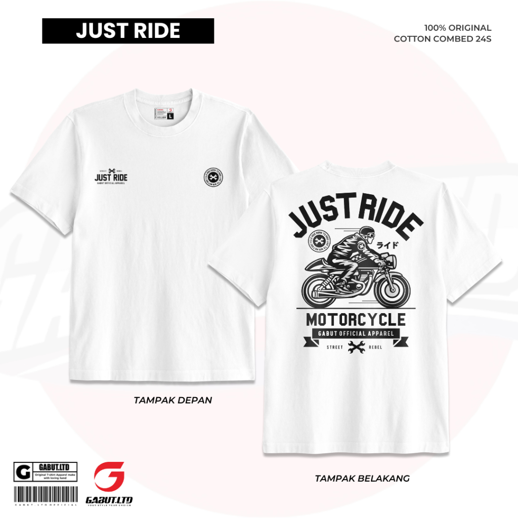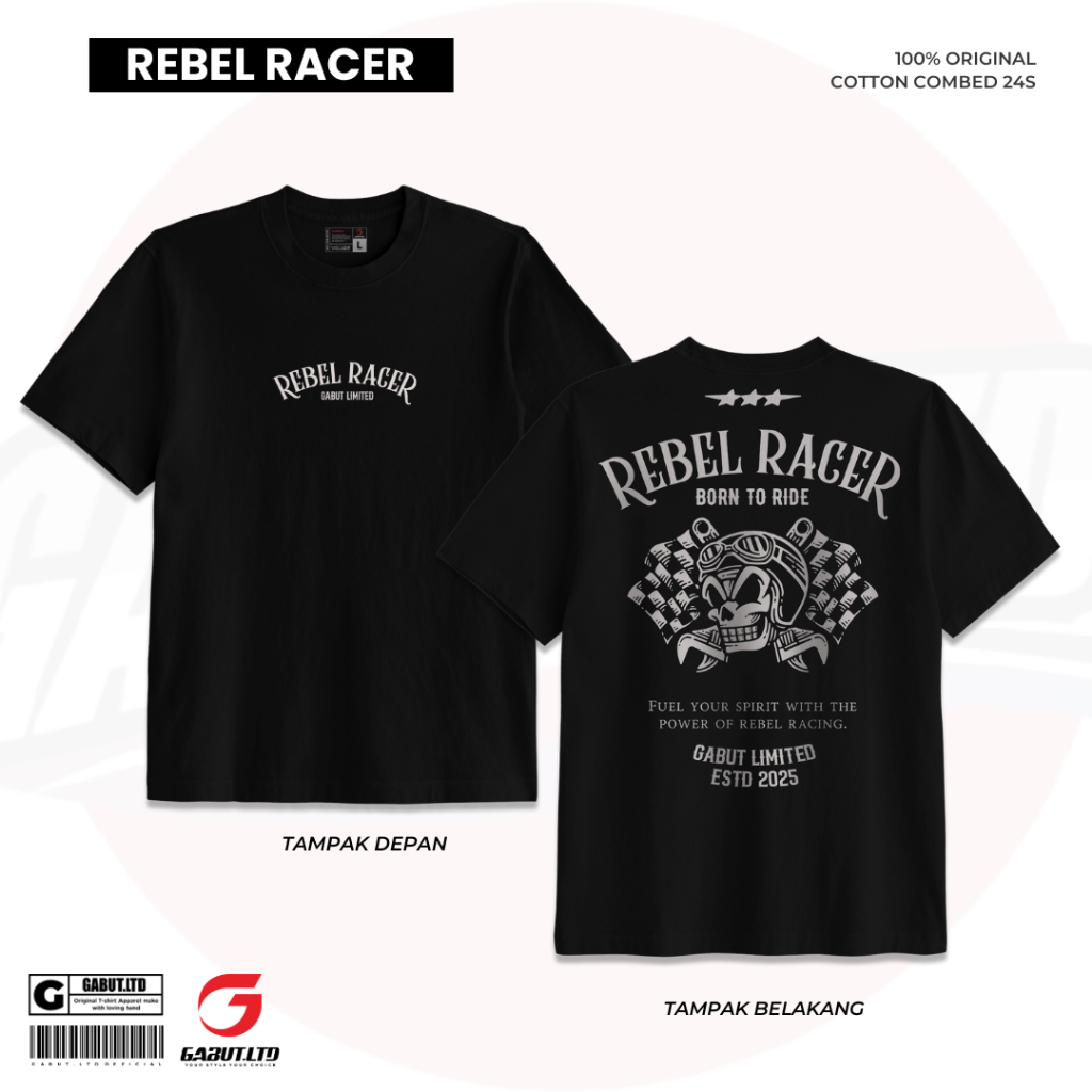 [GABUT] - Paket Bundling 2pcs Kaos Distro Unisex Motif REBEL RACER & JUST RIDE Bahan Cotton Combed 24s Kaos Oblong Pria Wanita 100 persen Produk Original
