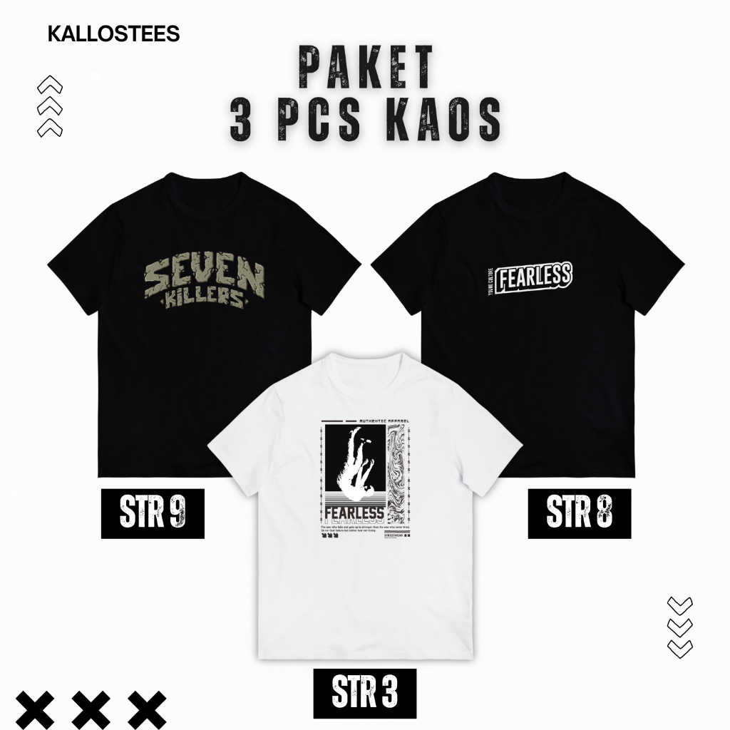 BUNDLING 3 Kaos FREE STICKER Hitam Putih Distro Streetwear Cowok Unisex – T-Shirt Katun Combed 24s KALLOSTEES