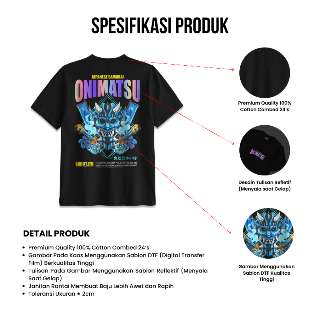 [GABUT] - Paket Bundling 2pcs Baju Kaos Distro Reflektif Unisex Pria Wanita Motif ONIMATSU dan ONIMECHA Cotton Combed 24s Kaos Oblong Pria Wanita 100 persen Produk Original