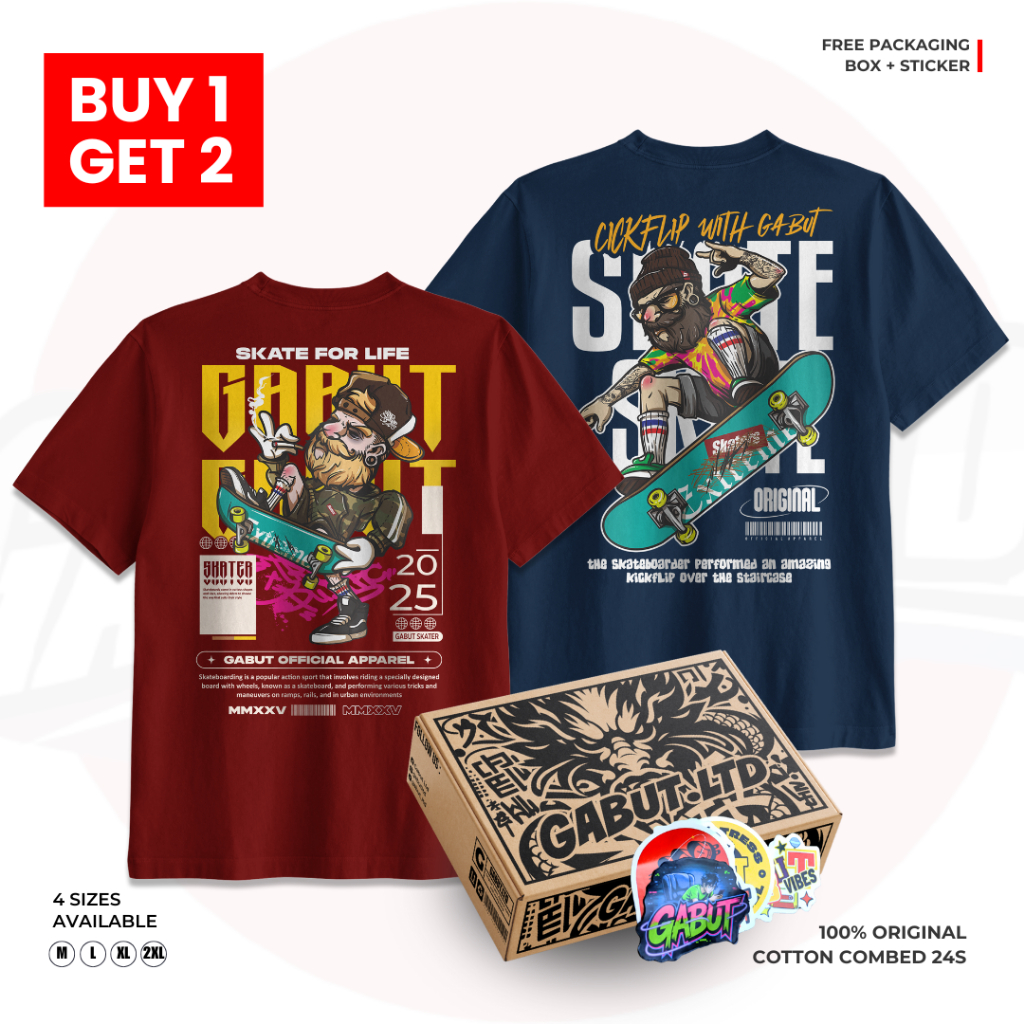 [GABUT] - Paket Bundling 2pcs Baju Kaos Distro Unisex Pria Wanita Motif Skate For Life Maroon dan Cickflip With Gabut Navy Cotton Combed 24s Kaos Oblong Pria Wanita 100 persen Produk Original