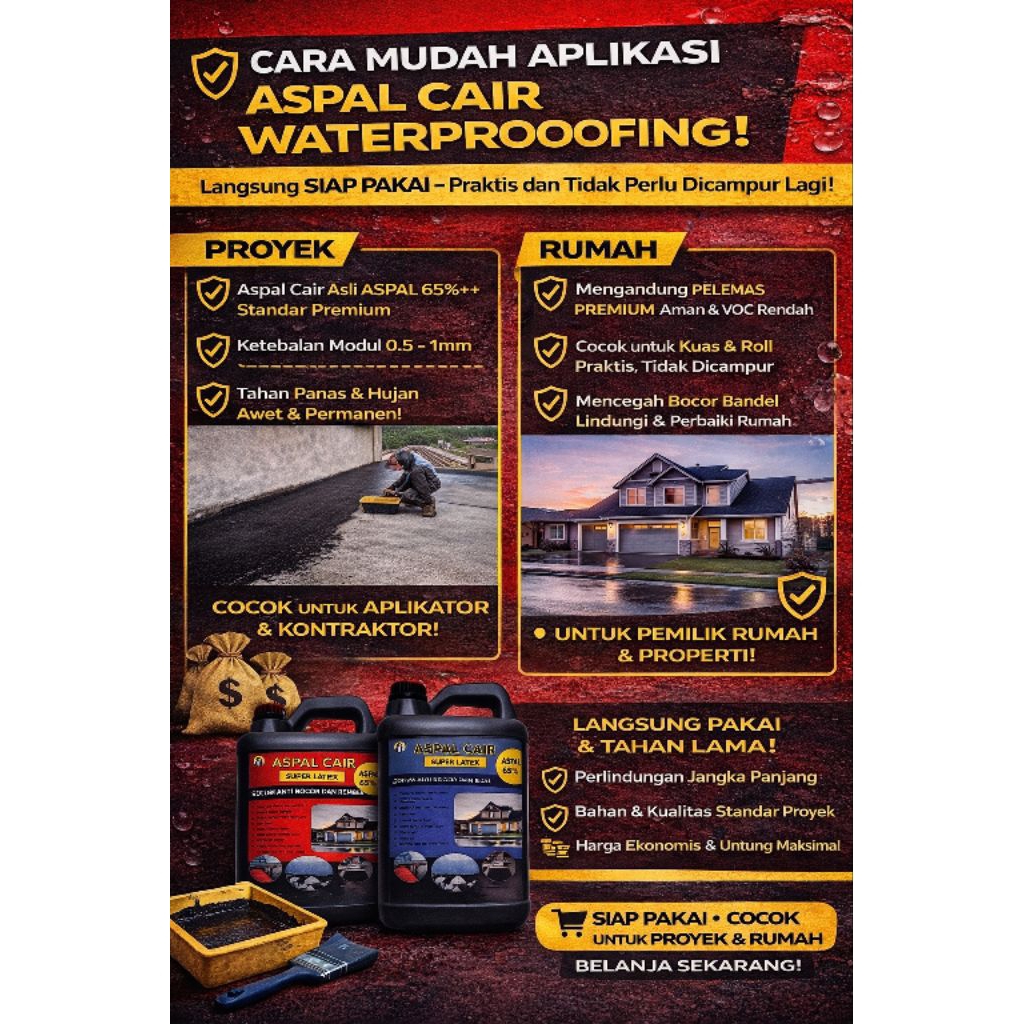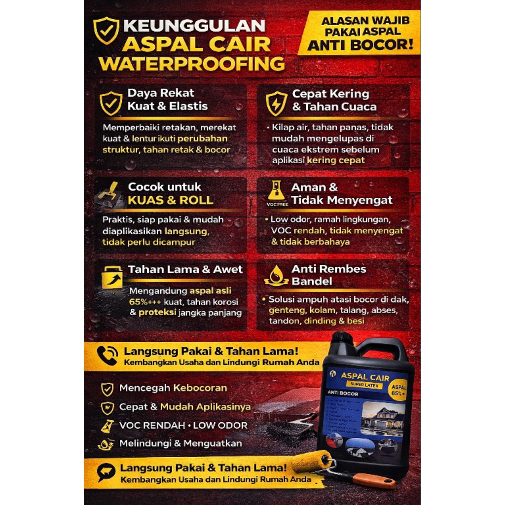Aspal Cair Super Latex Kandungan Aspal 65 PERSEN ++ 1Kg,2Kg,5Kg