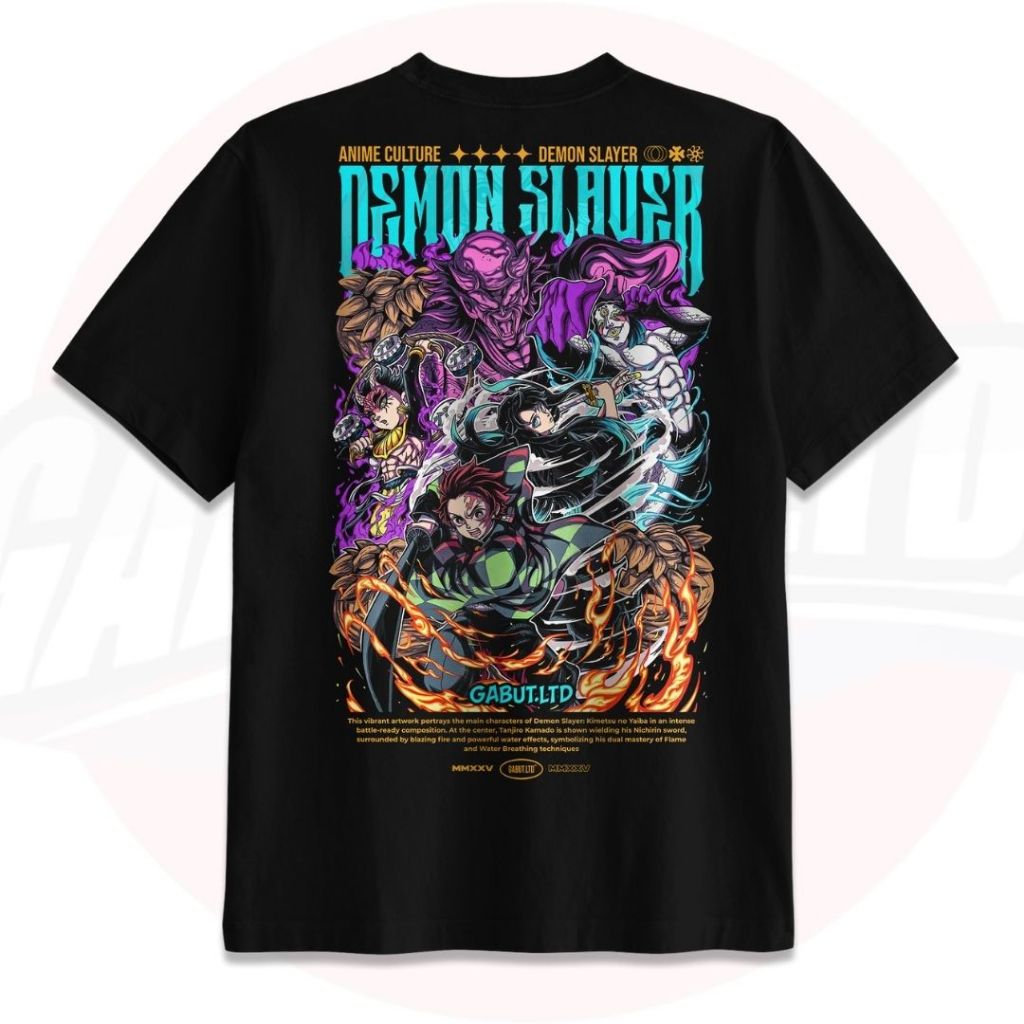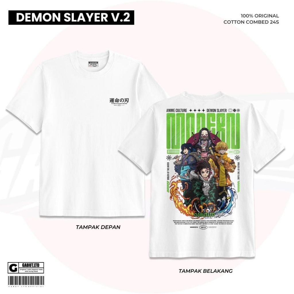 [GABUT] - Paket Bundling 2pcs Kaos Distro Unisex Motif DEMON SLAYER V.1 dan DEMON SLAYER V.2 Bahan Cotton Combed 24s Baju Kaos Oblong Pria Wanita 100 persen Produk Original