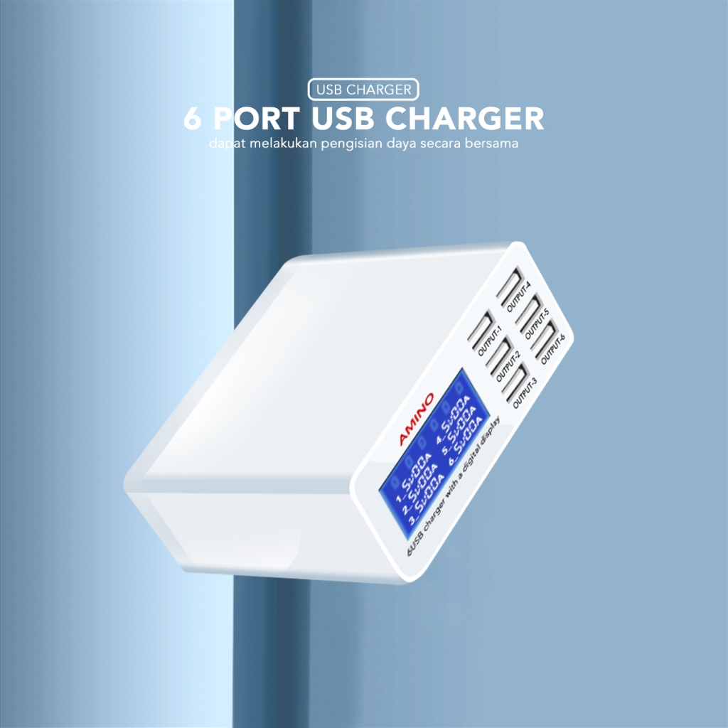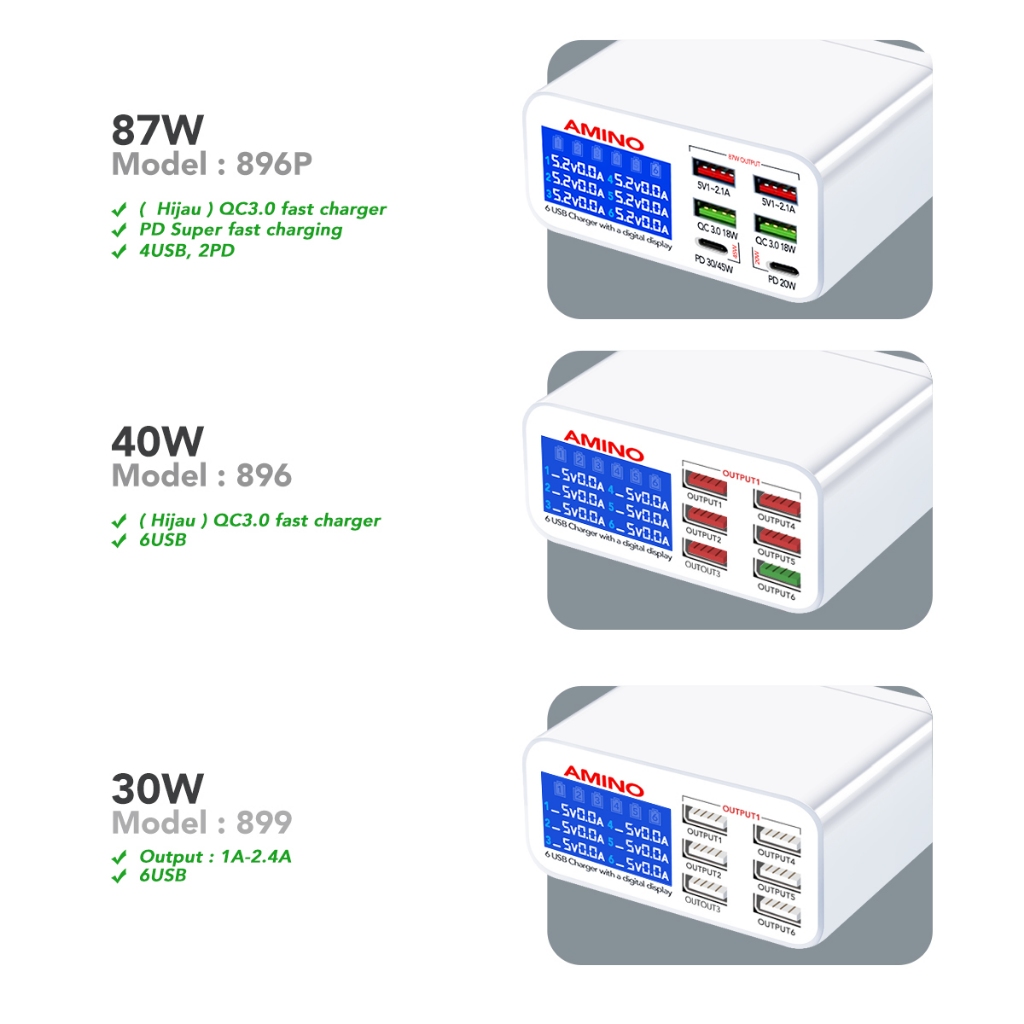 AMINO 6 USB Port Multi Port Charger Fast Charger LED Function 40W 87W PD QC Super Fast Charger TYPE-C Kabel