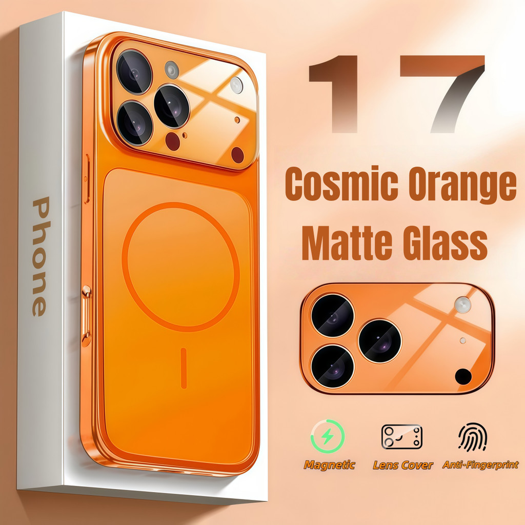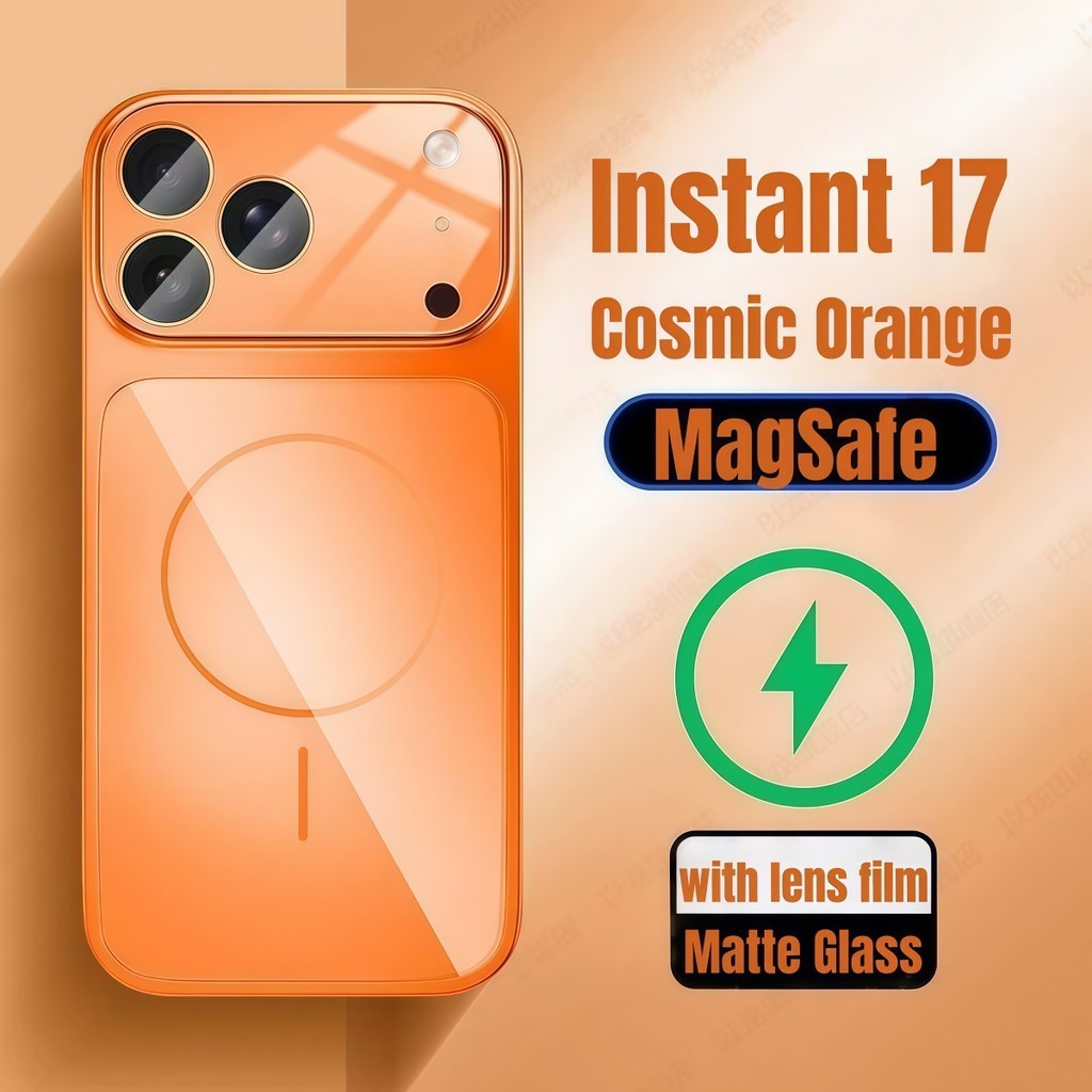 Instant 17 Case Luxury Cosmic Orange Matte Magnetic Phone Case For iPhone 17 Air Pro Max 13 14 15 16 Pro Max Nano Glass Camera Protection Shockproof Hard PC Cover